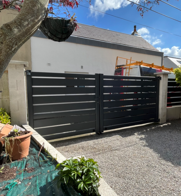 Le portail vous assure la sécurité il existe en version manuelle ou motorisée. Vous pouvez harmoniser le tout avec une clôture aluminium assortie.