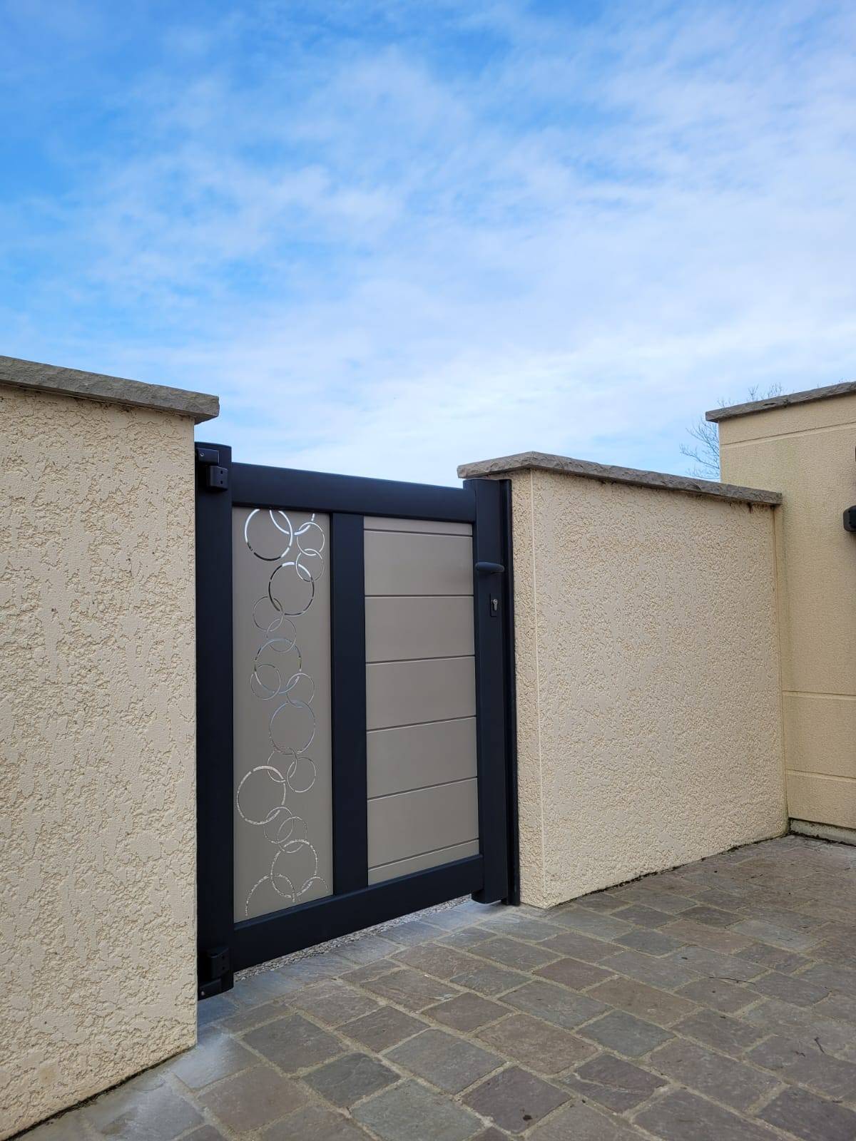 Pour un bel aspect esthétique nos clients ont choisi le portillon en aluminium assorti, facilitant l'accès à la maison.